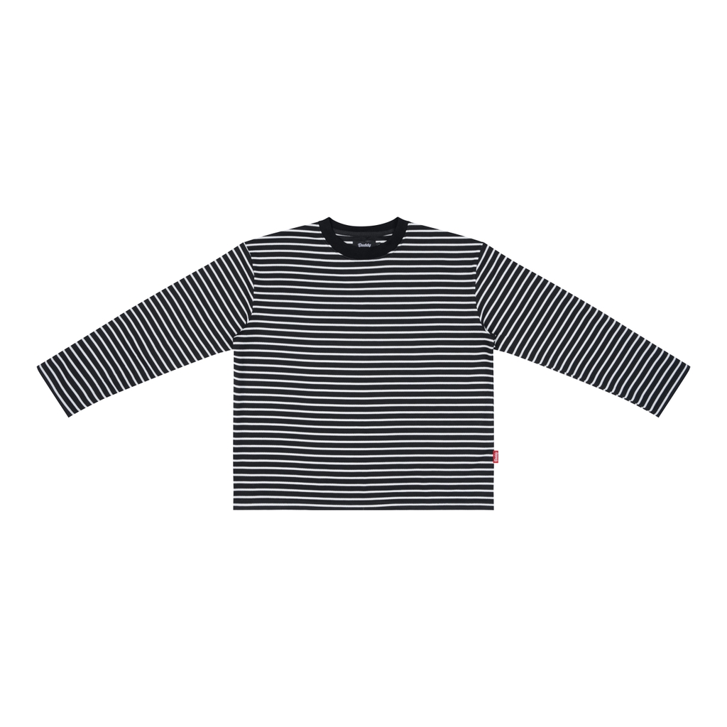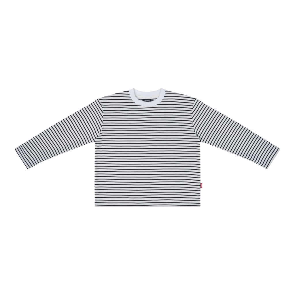 Áo thun sọc ngang tay dài form boxy (rộng chiều ngang, chiều dài vừa phải, tay áo không quá dài)